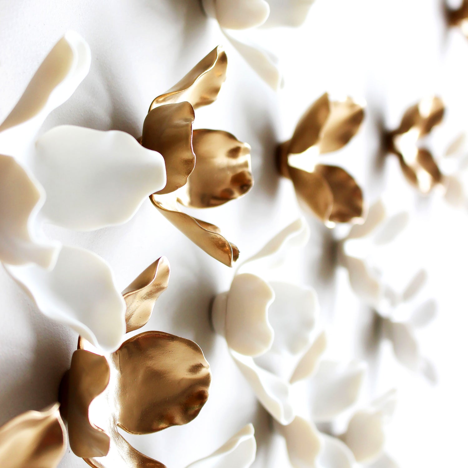Ceramic wall art Garland 3D artwork sculpture 24 white porcelain gold flowers Modern Japandi Floral decor quiet luxury MADE TO ORDER