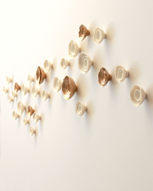 Porcelain Petal Wall Art: Summer Breeze - Pink, Gold, Brown & Copper Ceramic Sculpture (50)