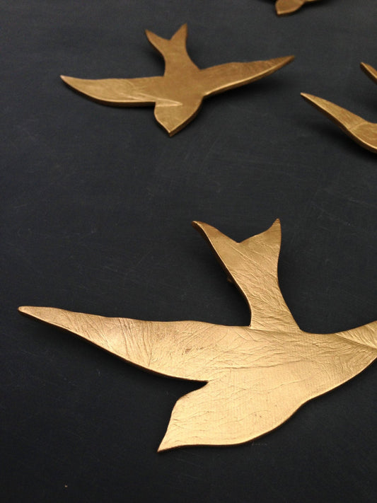 Gold wall art Flock 11 wall art sculpture birds swallows Original artwork Ceramic porcelain wall sculpture gold finish Wall hanging decor MADE TO ORDER