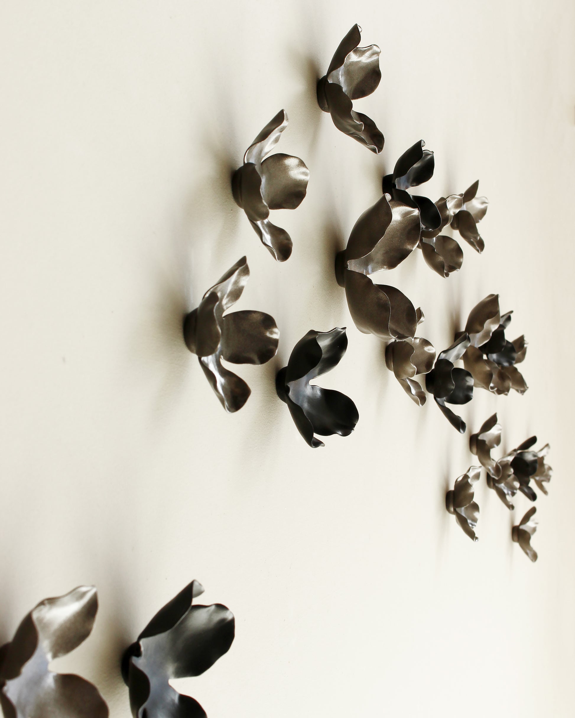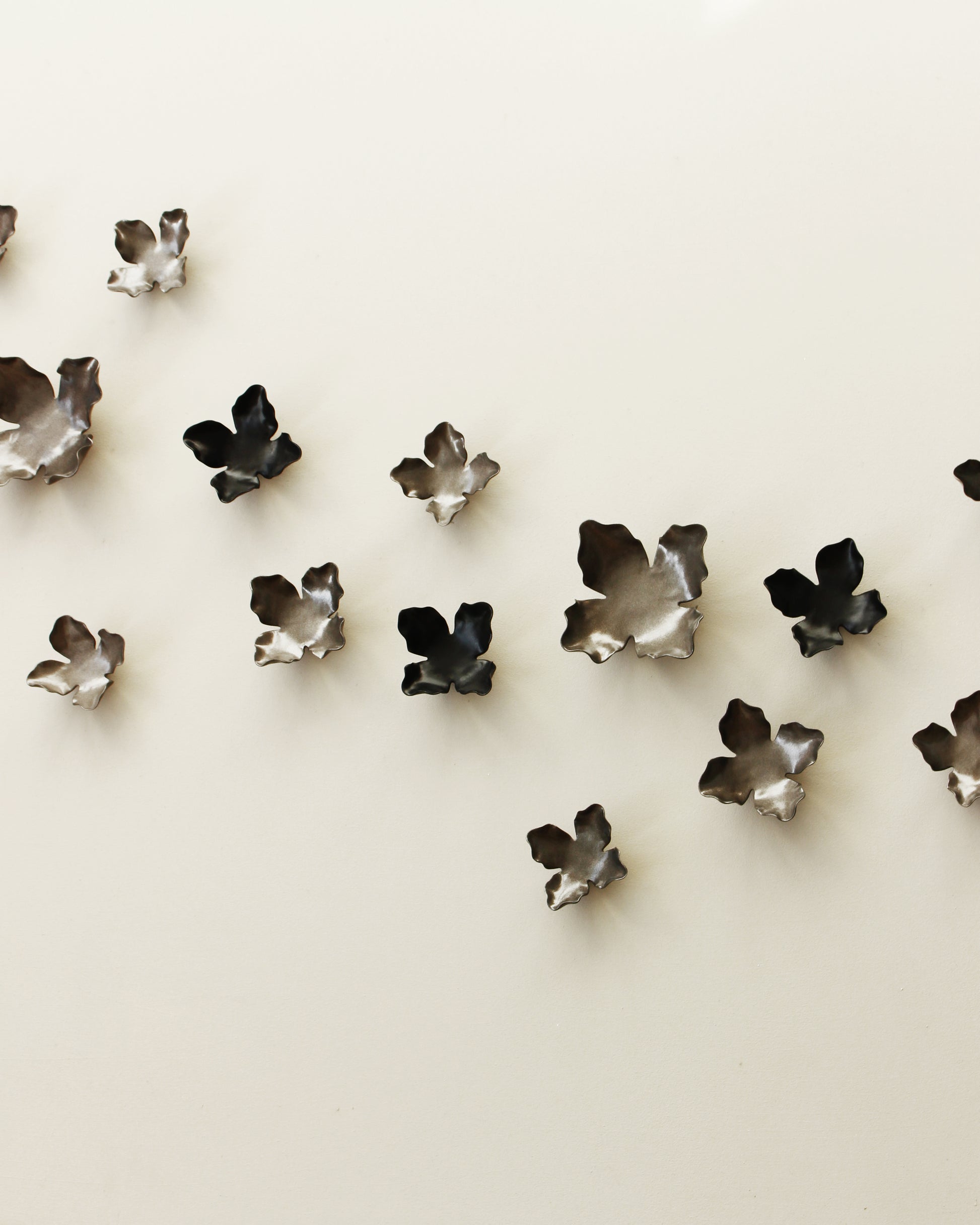 The set features 16 wall art flowers finished in metallic bronze finish and 6 flowers in a simple deep black. They are carefully moulded, carved and crafted here in my pottery studio.