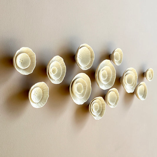 Abstract wall art Original 3D artwork Set of 12 ceramic porcelain handcrafted sculptures Rose flower Modern Japandi minimalist