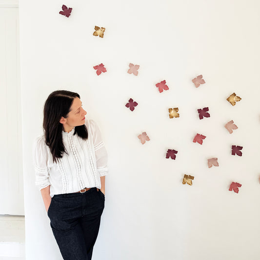 Blossom Petal Wall Art: Dark Olive and Sage Green, Pink & Gold Porcelain Ceramic Wall Sculpture (48) MADE TO ORDER